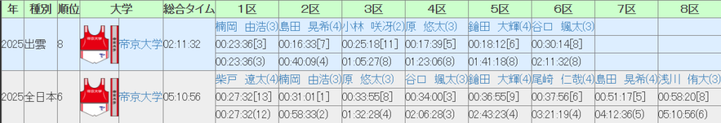 帝京大学 2025年度 出雲・全日本振り返り⇒箱根に向けて