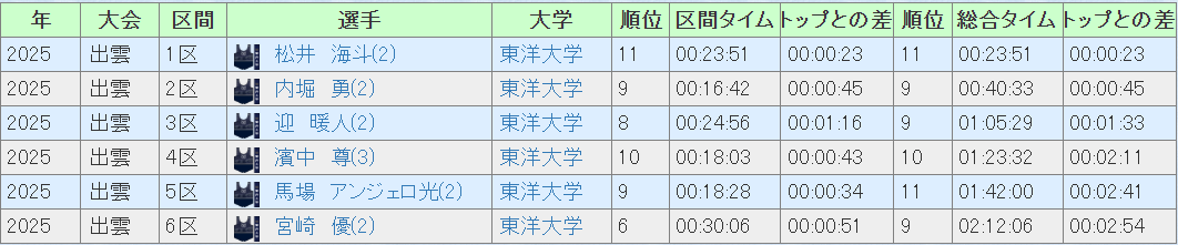 東洋大学 2025年度 出雲振り返り⇒箱根に向けて