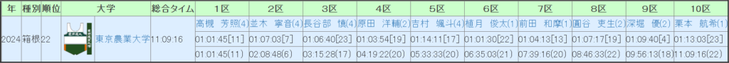 第102回(2026年)箱根駅伝 東京農業大学 区間配置予想