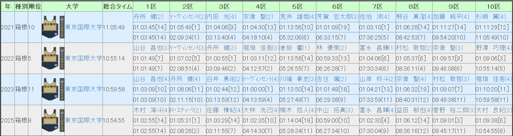 箱根で崩れることのない強さ、箱根未経験の選手やこれまで目立った実績の無い選手が箱根で好走するというのは東京国際の箱根での安定感を支えています。私も戦力的には連続シードは厳しいように見えてしまいますが、それでも東京国際ならばやってくれそうな期待感があるんですよね。予選会校の大半が往路の平地で不安があるのに対し、東京国際はここで大きなアドバンテージが期待出来ますからね。今回の箱根でも東京国際の粘り強い走りを再び見せてほしいですし、連続シードを達成して欲しいです。