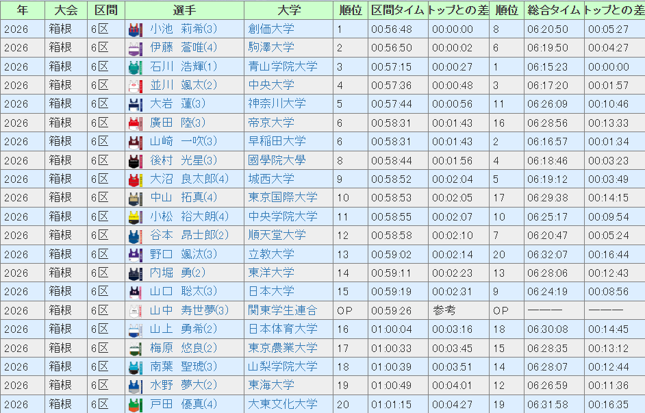 第102回(2026年)箱根駅伝 6区振り返り ~区間賞:小池(創価)~